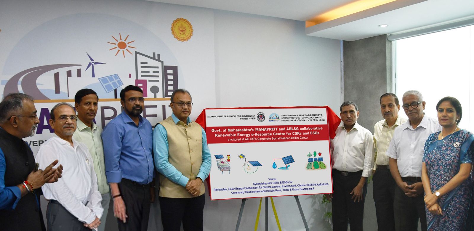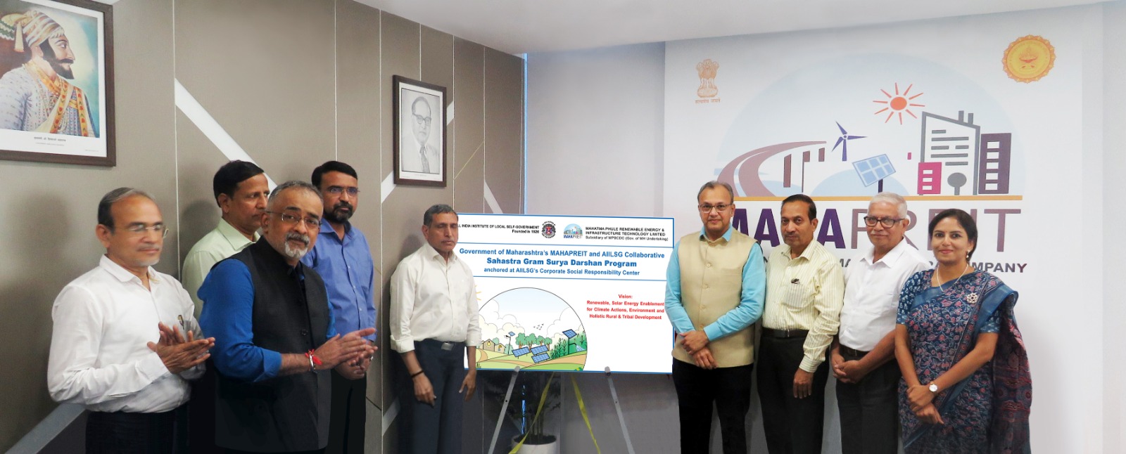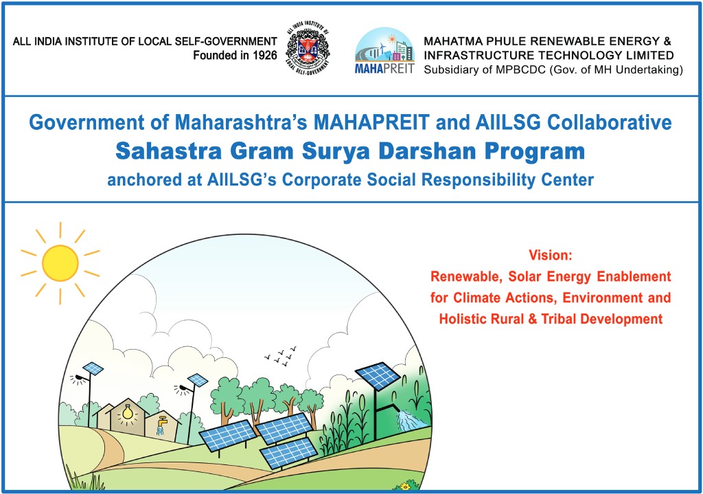 - MAHAPREIT [Mahatma Phule Renewable Energy and Infrastructure Technology Limited] and AIILSG [All India Institute of Local Self-Government] together launched their collaborative initiatives of Sahastra Gram Surya Darshan Program and Renewable Energy E-Resource Centre for CSRs & ESGs on 27th November 2025 at MAHAPREIT, Mumbai. The programs were launched at the hands of Mr. Bipin Shrimali, Managing Director, MAHAPREIT and Prof. Dr. Mukesh Kanaskar, Deputy Director General, AIILSG in the presence of august gathering of dignitaries from the sector.